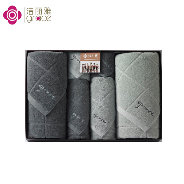 【设计说明】初看,冷酷的灰色方块,层层叠叠,豪情万丈,却不见那舞动的细线字母,正在诺大的舞台得意地跳,带着写意的笑。虽然是一款简单的产品,但同样是严格按照洁丽雅毛巾礼品的品质要求生产。看着产品上栩栩如生、欢快跳跃的精致的绣花品质就能了解每一条都倾注了我们对产品的热爱。
