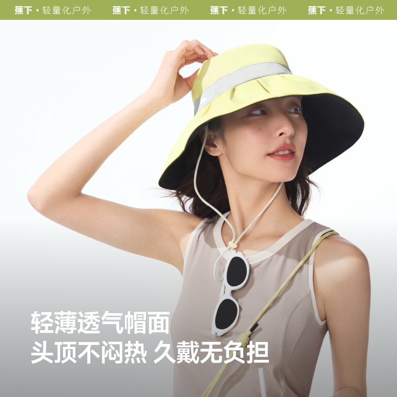 蕉下女士贝壳渔夫黑胶防晒帽BM507