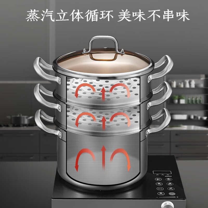 康巴赫新欧式304不锈钢三层蒸锅28cm KGX-Z280