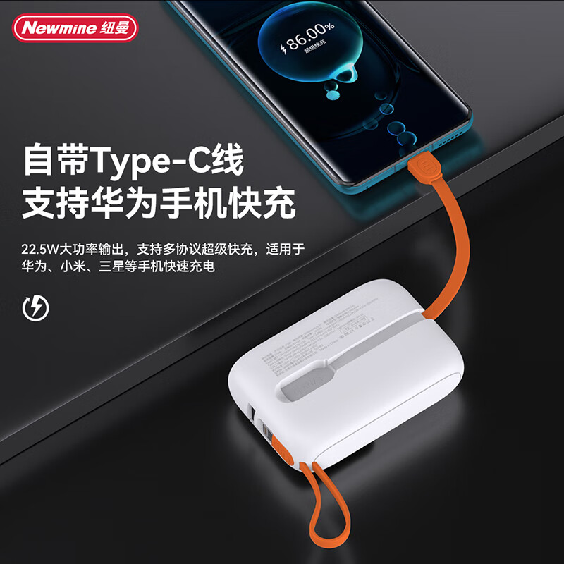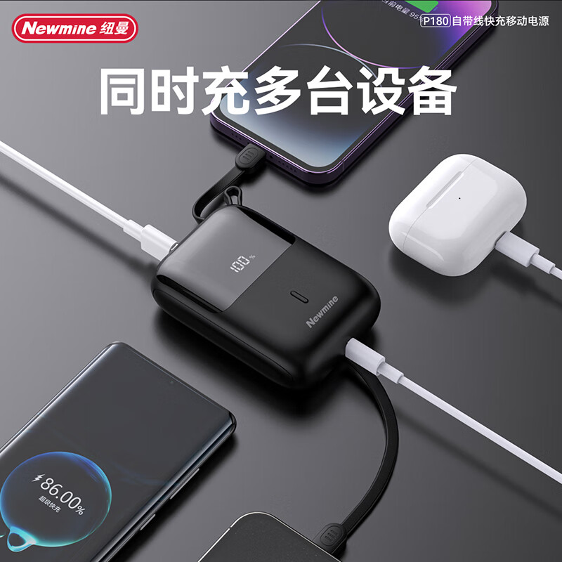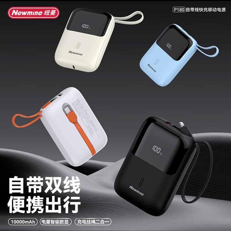 纽曼P180 10000毫安自带线快充数显移动电源